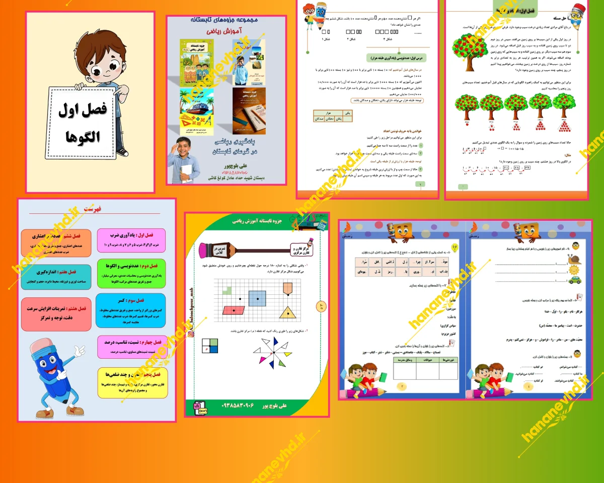 شما میتواند نمونهکارهای ما را در طراحی و صفحهآرایی جزوه و کتاب ریاضی اول تا ششم ابتدایی در کانال تلگرام، پیج اینستاگرام و همچنین وبسایت مشاهده کنید و برای چاپ کتاب مشاوره بگیرید و حتی اگر قرار نیست کتاب خود را چاپ کنید و میخواهید به صورت یک جزوه زیبا و پرینت و سیمی شده داشته باشد باز هم به یک طراحی مناسب نیاز دارید. خیلی راحت سفارش خود را از طریق تلگرام و یا واتساپ پیام دهید.